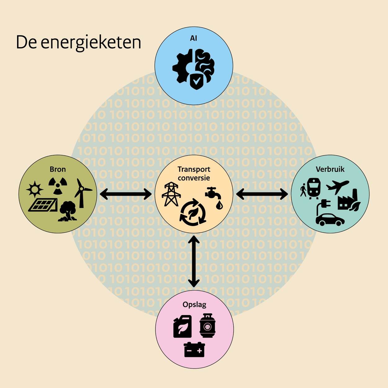 Defensie is een energie-intensieve organisatie. Een pantserwagen of straaljager zal niet zo snel op elektriciteit voortbewegen. Maar bij heel veel andere toepassingen zijn grote stappen te zetten. “Los van de energietransitie die de burgermaatschappij van Defensie vraagt, heb je er ook operationeel echt belang bij”, trapt Bart Zwiep af. Hij is innovator bij MIND en kijkt naar de hele keten, van energieproductie, tot -opslag en verbruik. “Die bestaat uit de bron zoals een kolencentrale of wind- en zonne-energie, dan de omzetting naar bruikbare energie, de opslag daarvoor zoals een accu of brandstoftank en uiteindelijk verbruik je die energie.”