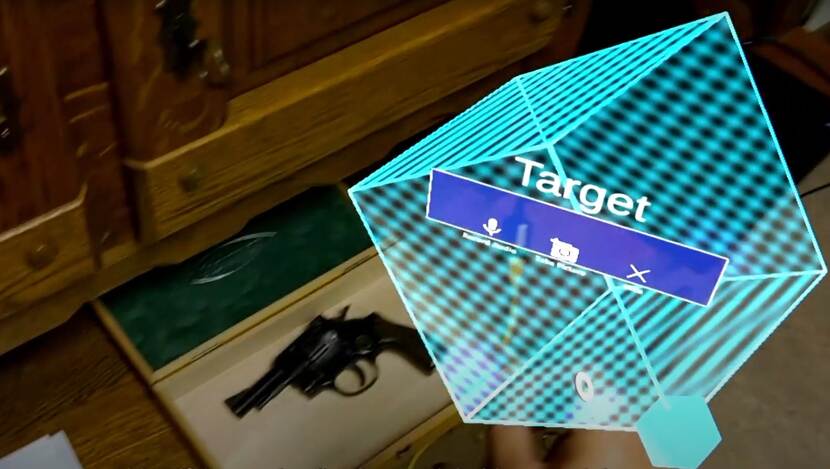 ARTEX ondersteunt. Allereerst creëert de wereld van Augmented Reality overzicht. Buiten staat korporaal Robbert voor een laptop, waarop het AR-systeem een complete plattegrond van het gebouw maakt en laat verschijnen. Daarbij volgt hij hoe zijn collega’s zich iedere seconde door het gebouw bewegen. Real time informatie-uitwisseling is een tweede voordeel die AR biedt. “Wordt er een interessant object gevonden, dan kan de searcher er een foto of een 3D-opname van maken. Die is direct naar buiten te sturen, eventueel met een begeleidende geluidsopname. Je legt daarbij de situatie vast zoals je hem aantreft”, aldus Trum. De AR-bril biedt zo een extra paar ogen. Al ‘ziet’ de lens slechts de helft van bijvoorbeeld een Glock, dan herkent de AR-bril het handwapen.