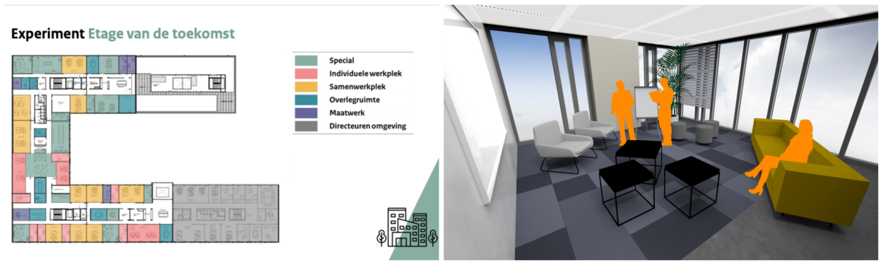 Het experiment Etage van de Toekomst is een van de acht thema’s van het ‘werkenbijDMO-concept’. Met dit programmaplan wil DMO komen tot succesvolle implementatie van het hybride werken.