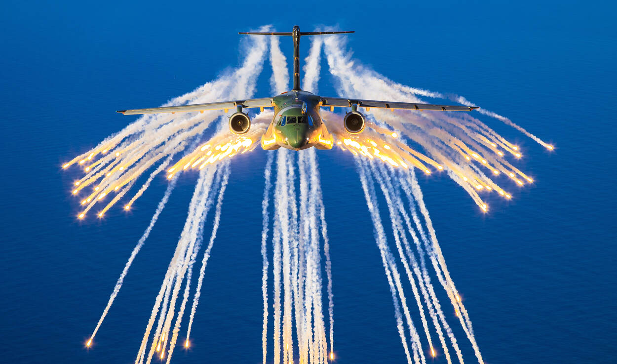 De C-390M beschikt over een volledige geïntegreerde set zelfbeschermingssystemen. Foto: sergeant Bianca, Força Aérea Brasileira