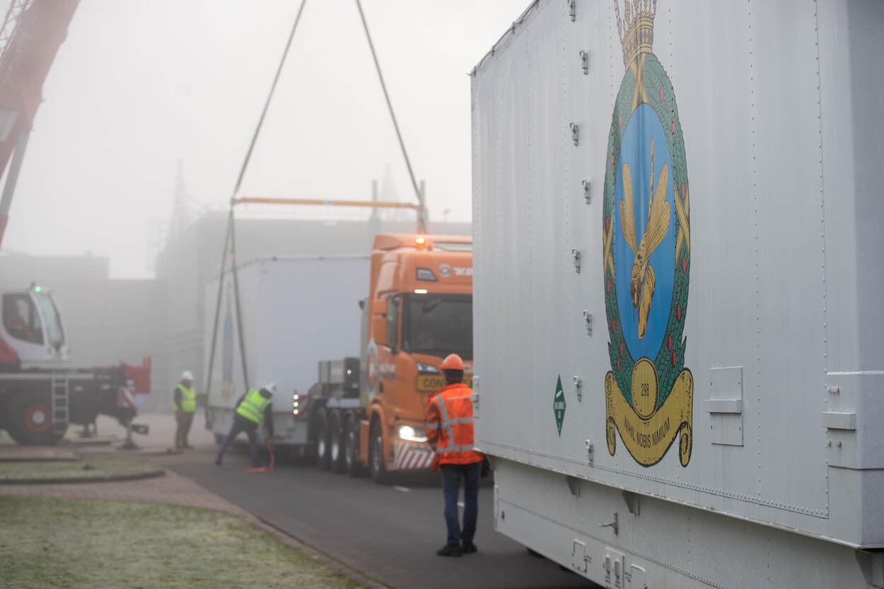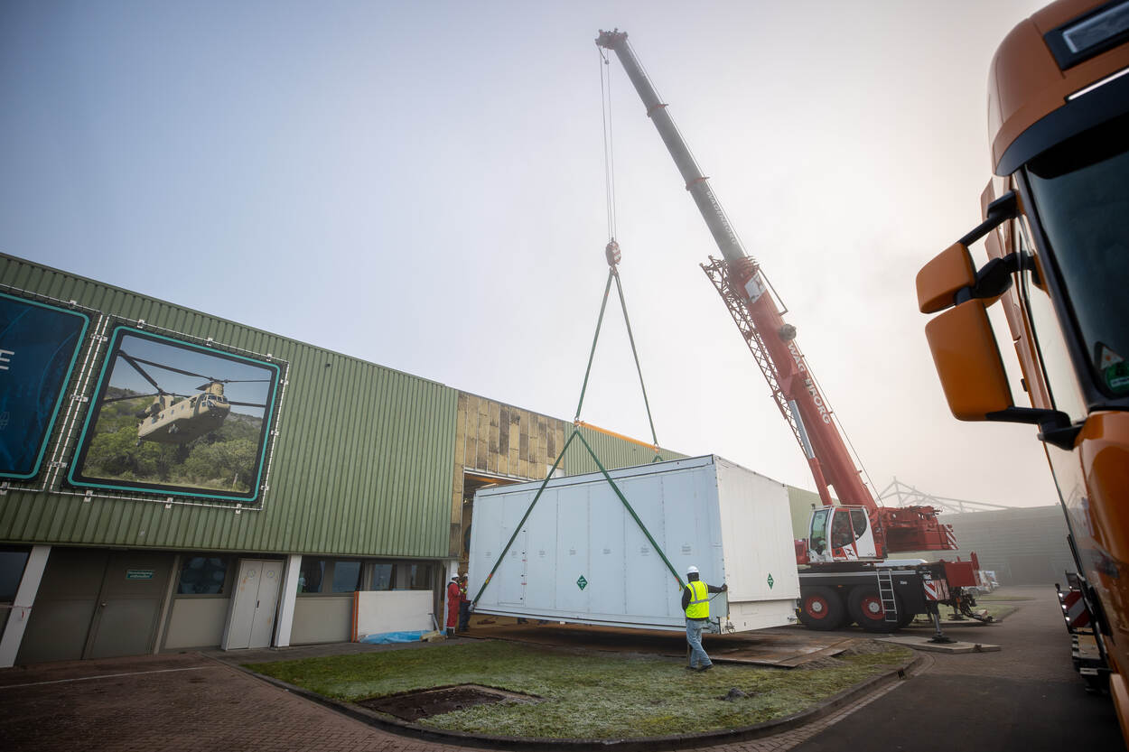 De eerste streepjes licht verschijnen boven vliegbasis Gilze-Rijen als de enorme kraanwagen van Wagenborg de eerste van twee containers zorgvuldig door de opening van een loods manoeuvreert. Projectleider luitenant-kolonel Wil van Rijn (DMO Projecten) kijkt met een brede glimlach naar wat de volgende stap is van een ambitieus plan.