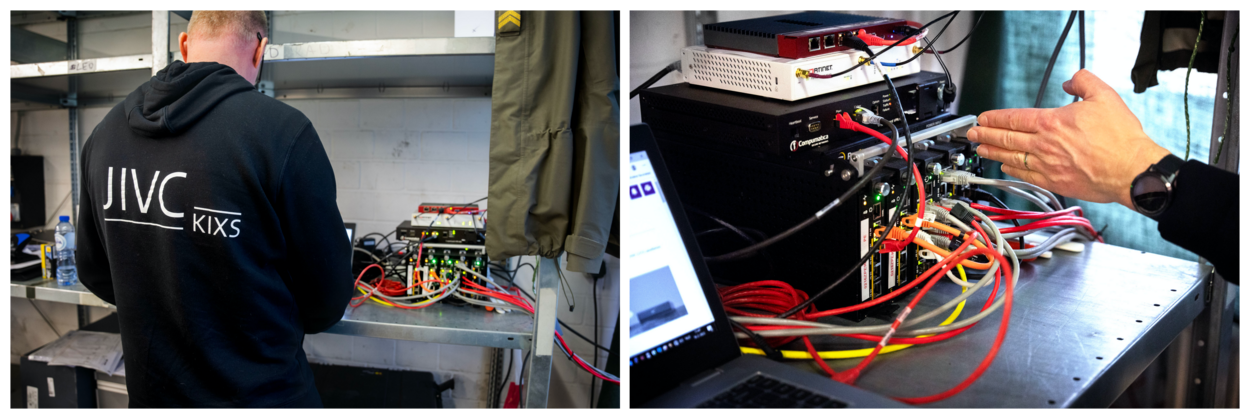 Een uitkomst bij gebrek aan verbindingen. Dat moet de Rapid Response Kit (RRK) worden die senior innovatiemanager John Stroosnijder en senior beheerder ICT Brian Bron van KIXS samen met andere afdelingen van JIVC ontwikkelen. “De kit is onderdeel van een groter project: Multi Purpose Edge Computing”, vertelt Stroosnijder terwijl hij de op elkaar gestapelde kastjes laat zien die ruim dertig militairen in het Duitse Bergen-Hohne van een snelle en veilige internetverbinding voorzien. Dat klinkt in eerste instantie niet veel, maar voorheen konden slechts twee mensen werken op de verbinding via de Duitse lokale lijn.