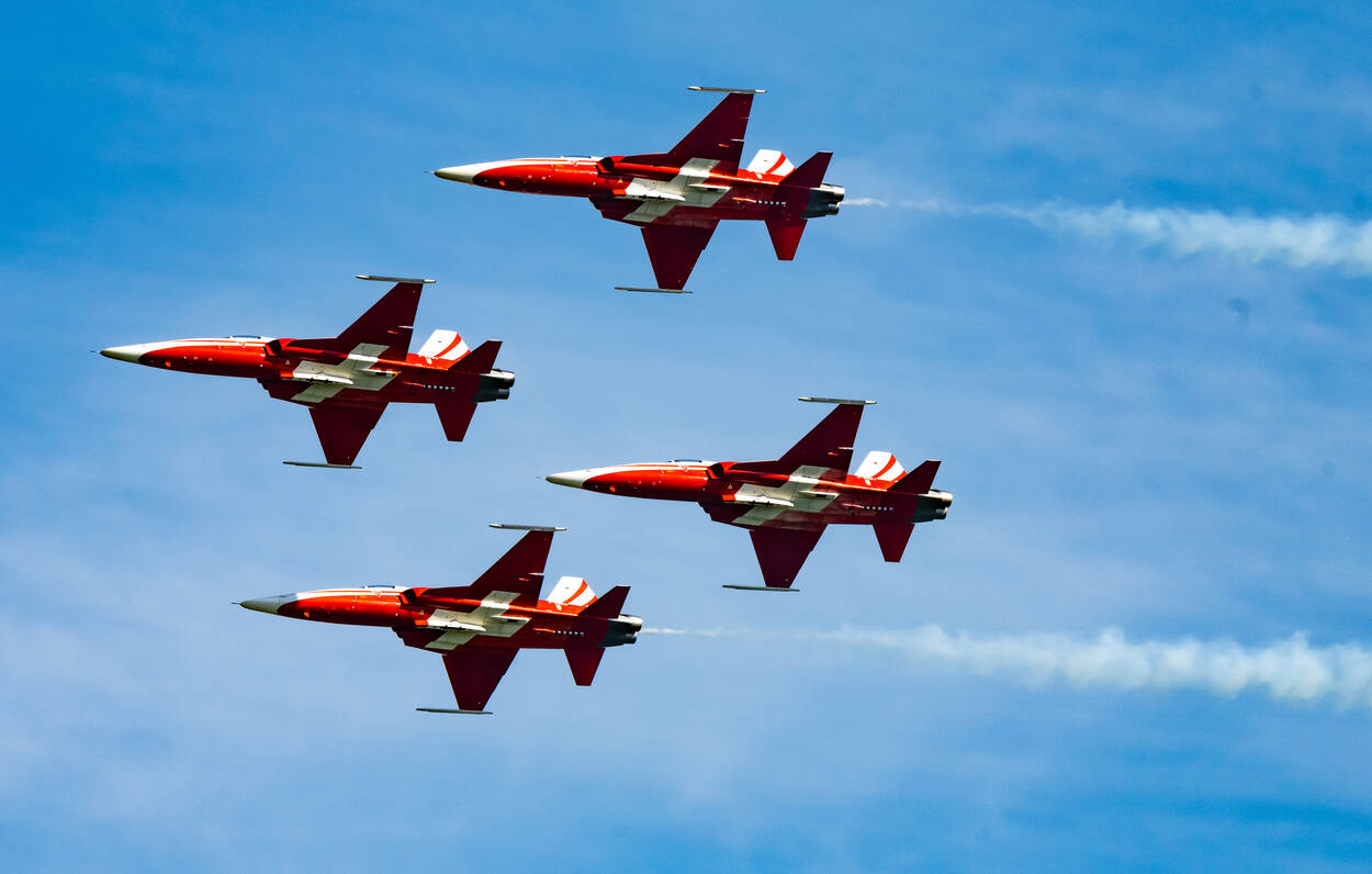 Een demonstratie van Patrouille de Suisse in de lucht.