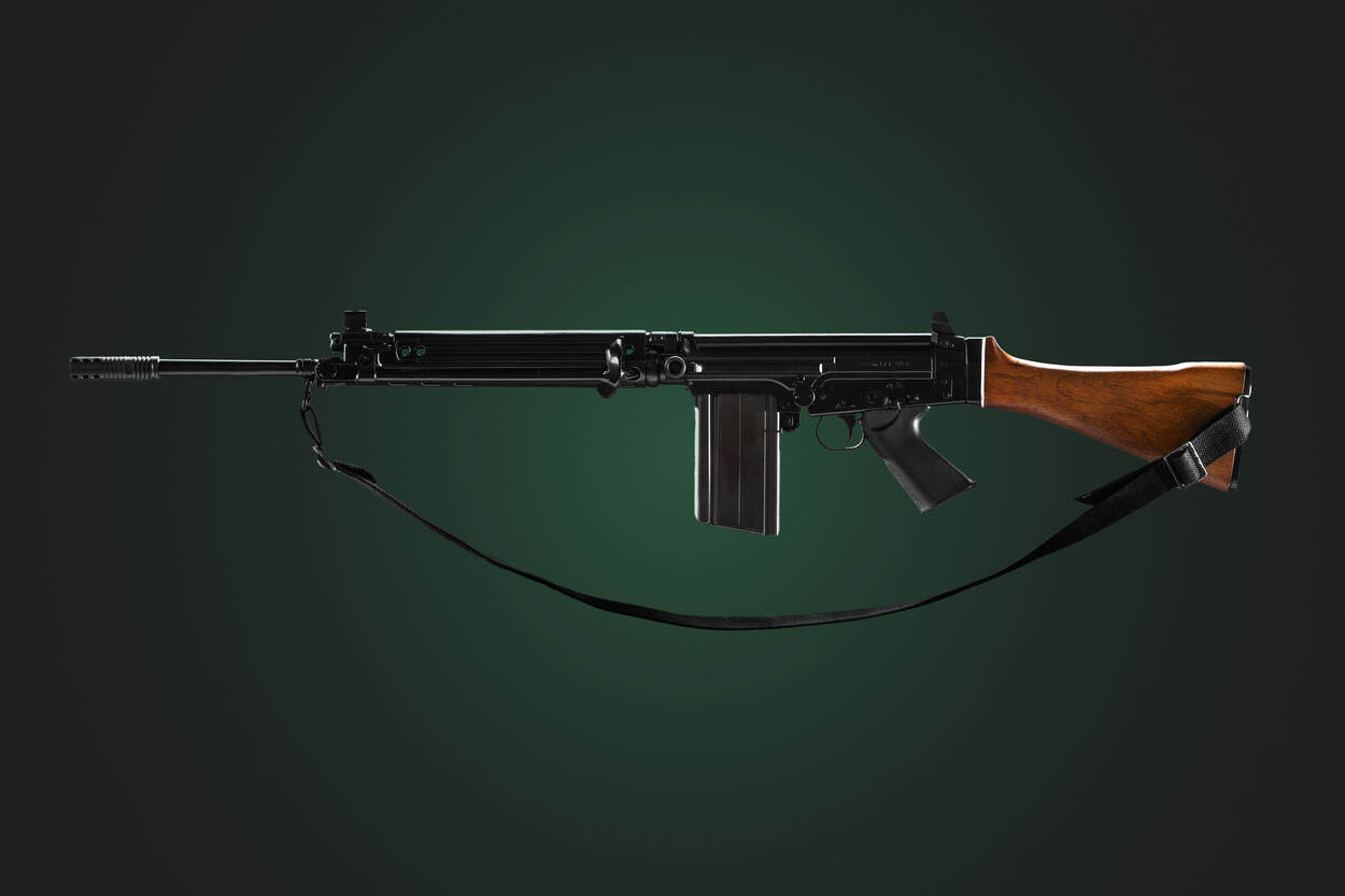 FN FAL geweer op groene achtergrond