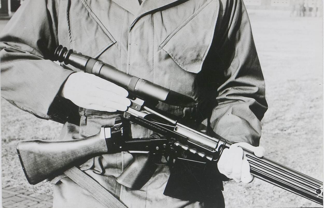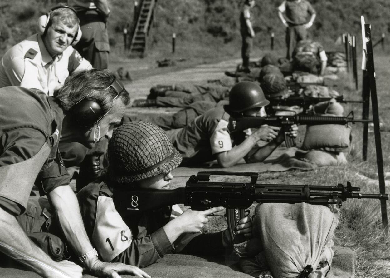 In 1964 waren deze militairen van de Kader School Infanterie in Vught een van de eersten die met de nieuwe FAL schoten.