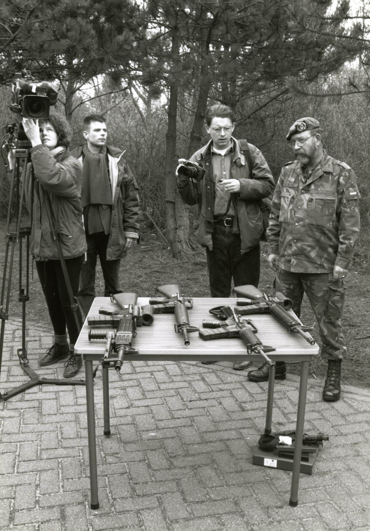 Er was veel media-aandacht voor de nieuwe Diemaco. Hier presenteert een adjudant de vier varianten aan journalisten.