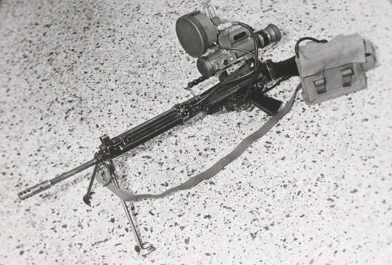 FAL met infraroodkijker op grindondergrond.