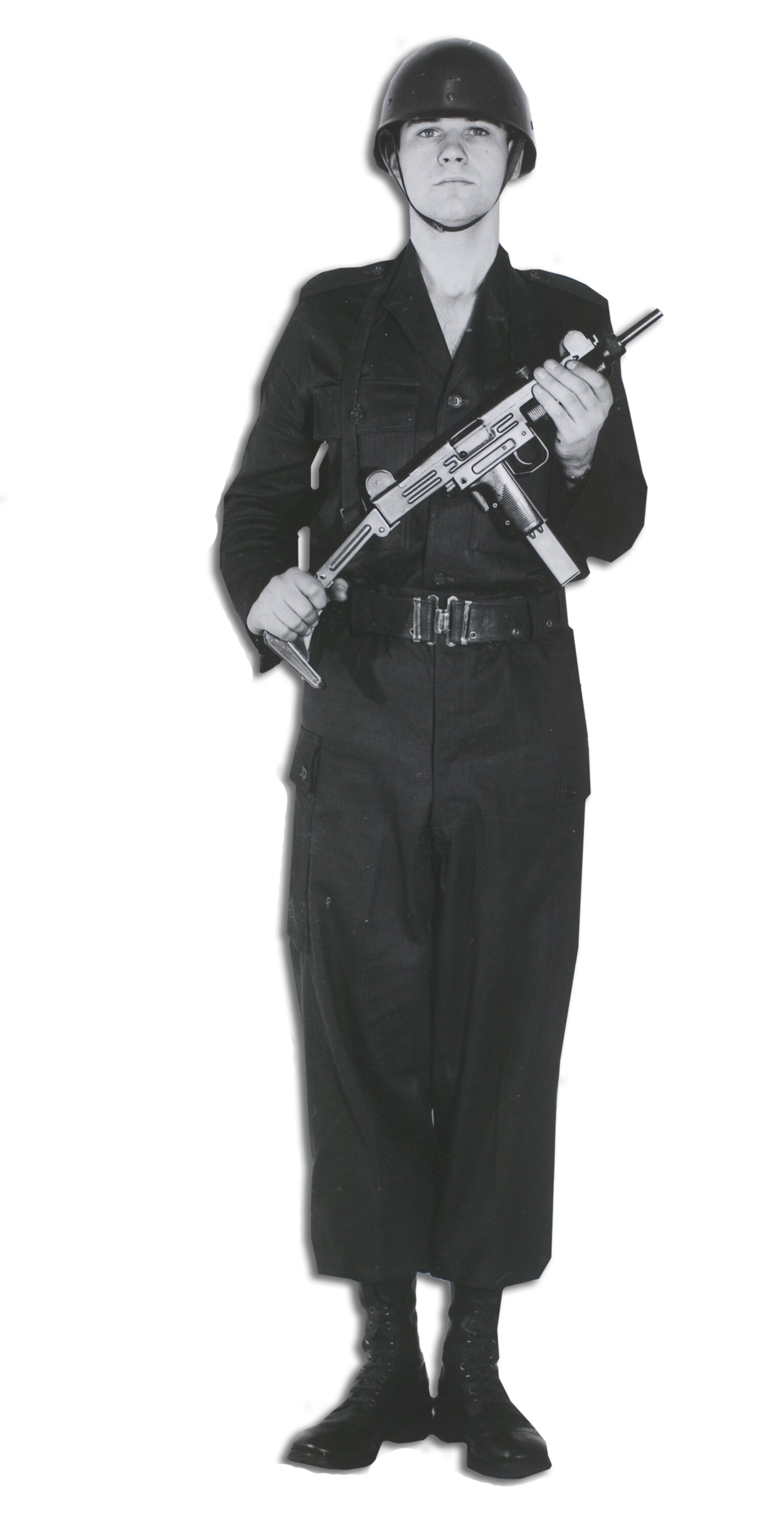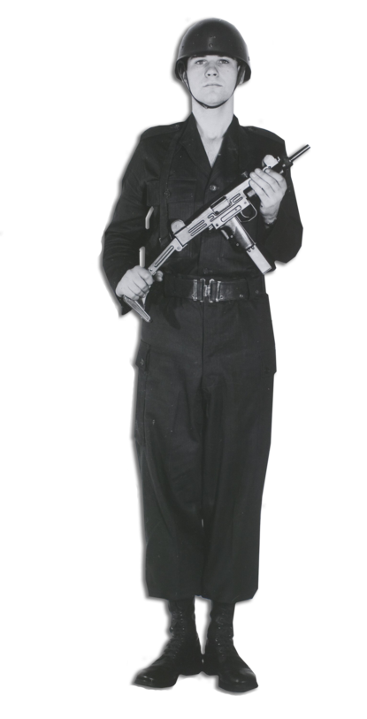 Na zijn dienstplicht bij 11 Geniebataljon in Wezep vanaf juli 1983 was korporaal-1 b.d. Joan Plaatsman vier jaar reservist in Noord-Holland om vervolgens als Technisch Specialist tot april 1995 als YGZ- en YTV-chauffeur voor 105 Vouwbrug- en 102 Bouwmachinecompagnie te rijden. In zijn NatRes- en TS-tijd was de Uzi zijn persoonlijk wapen. In de reservistentijd ging het wapen zelfs mee naar huis. “Zondags thuis schoonmaken, aan de huiskamertafel. Dat mocht toen nog. Je hoefde geen kluis te hebben maar het wapen moest in delen uit elkaar opgeborgen worden. En tijdens vakanties moest je het afgeven bij een kazerne. Ik vond het een prettig wapen. Handzaam omdat je ook de kolf kon invouwen. Voor mijn laatste functie als chauffeur van een trekker-oplegger was dat perfect. Je had hem in de cabine bij je, met twee patroonhouders. Problemen had ik er eigenlijk nooit mee. Je moest wel mazzel hebben met je exemplaar. Ik schoot er zuiver mee op 100 meter. Het blijft een pistoolmitrailleur voor de korte afstand.”