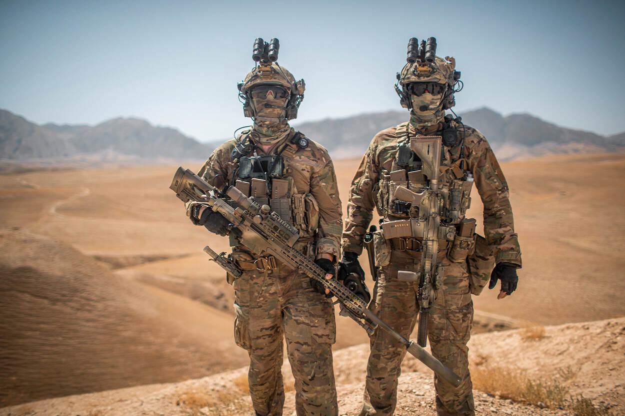 Een sniperteam van de Nederlandse Maritime Special Operations Forces met de Accuracy AX tijdens de NAVO-missie Resolute Support in Afghanistan in 2019.