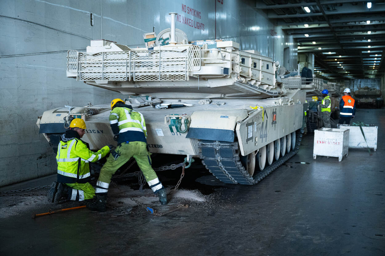 Honderden pantservoertuigen, wielvoertuigen en containers kwamen op 30 oktober aan in Nederland. Een Amerikaanse landmachteenheid vervoert het militair materieel vanaf de Verenigde Staten via de havens in Vlissingen en de Eemshaven via Duitsland naar Polen. Voor de doorvoer door Nederland levert Defensie ondersteuning.