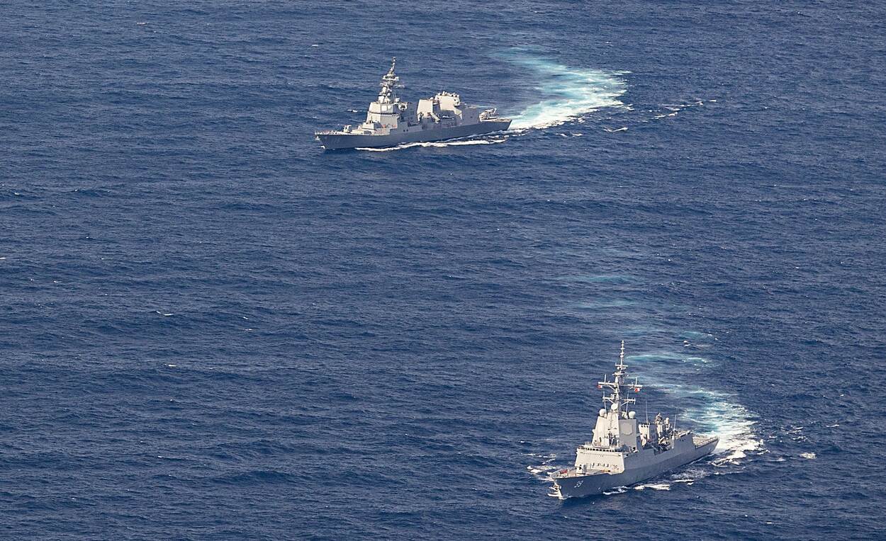 Op de foto HMAS HMAS Hobart en de Akizuki tijdens een oefening, om aan te geven dat de banden tussen de marine van Australië en Japan warm zijn.