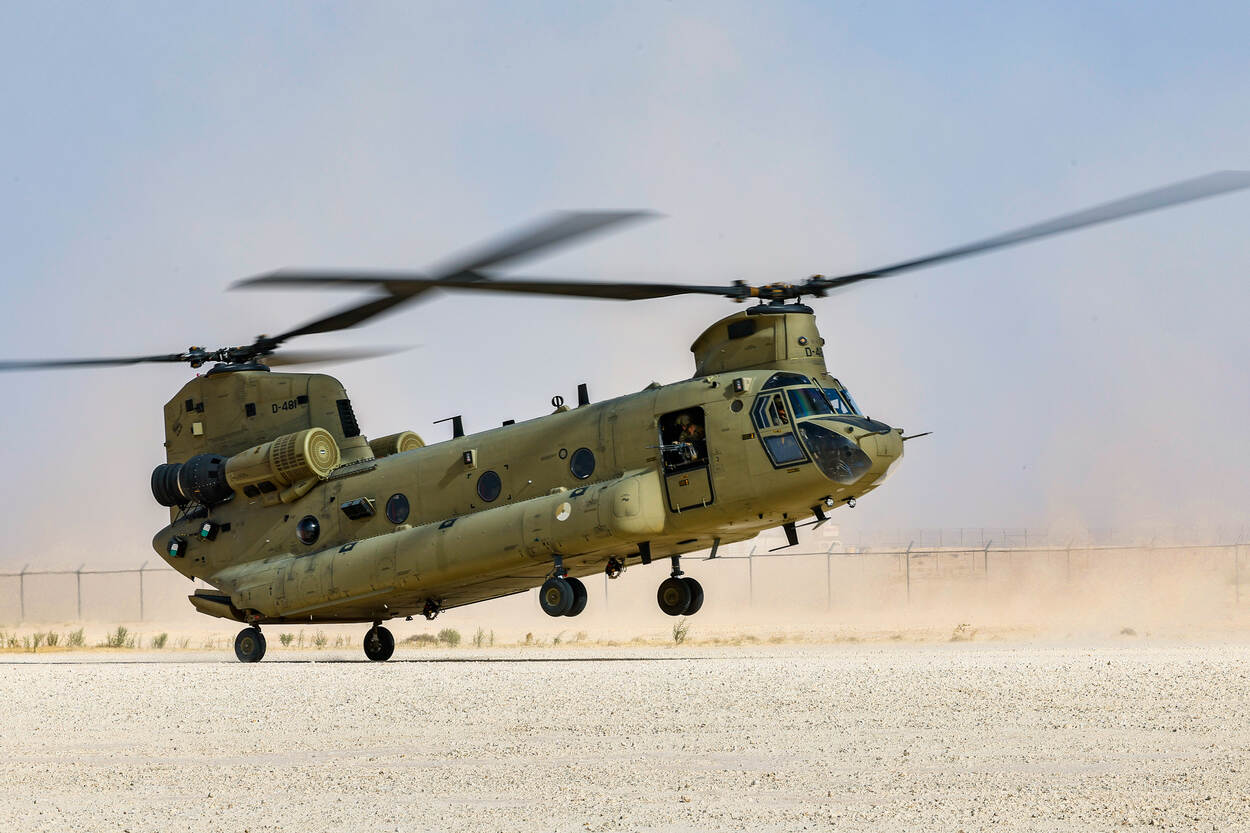 Tevens speelt de hitte zoals gezegd een grote rol. Ook al vallen de temperaturen in het begin van het jaar nog mee, in de zomer kan het kwik oplopen tot ruim 50 graden Celsius. En dat heeft natuurlijk effect op de Chinooks. “Door de hitte kunnen onderdelen sneller slijten en zijn oliën en vetten sneller verzadigd, waardoor ze eerder moeten worden vervangen.”