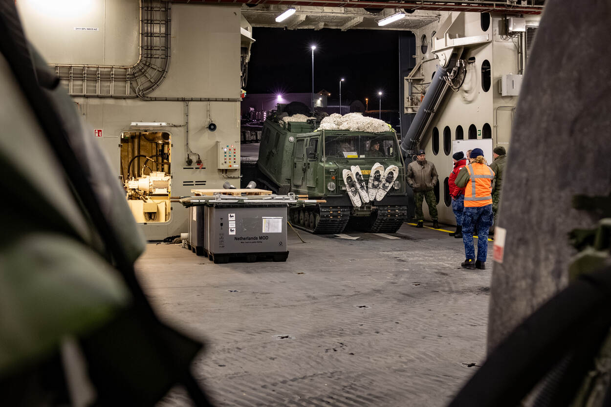 (beide onderstaande foto’s): Zr.Ms. Johan de Witt biedt ruimte aan grote aantallen mariniers, voertuigen en materieel.