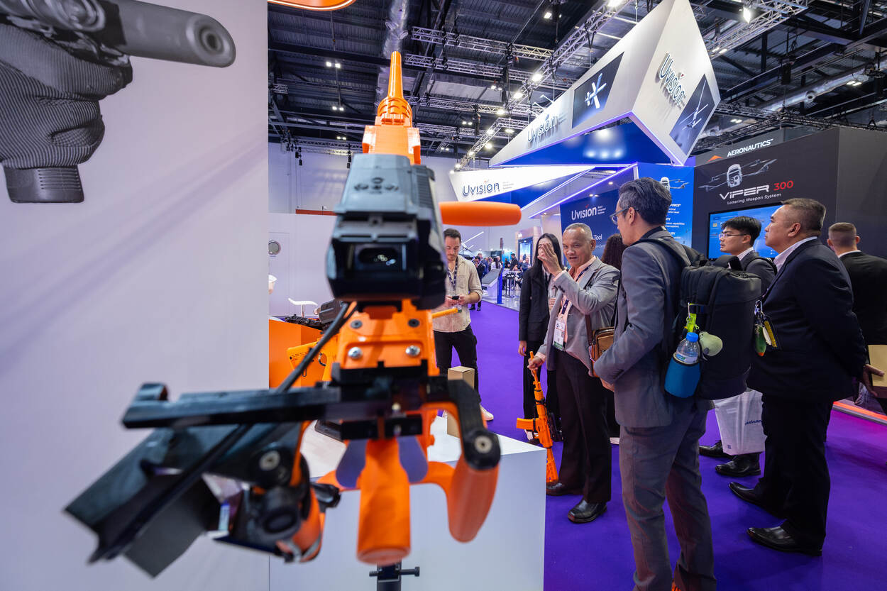 Dit anti-drone wapen is weliswaar fel oranje, maar geen Nederlands product. De bedrijven op DSEI hebben niet te klagen over belangstelling.