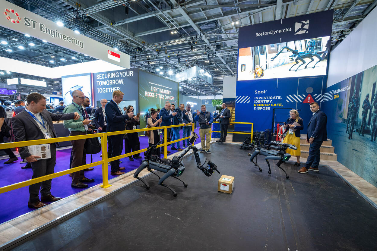 Veilig pakketjes onderzoeken, dat kunnen deze ‘honden’ van Boston Dynamics die volop aandacht trokken op DSEI.