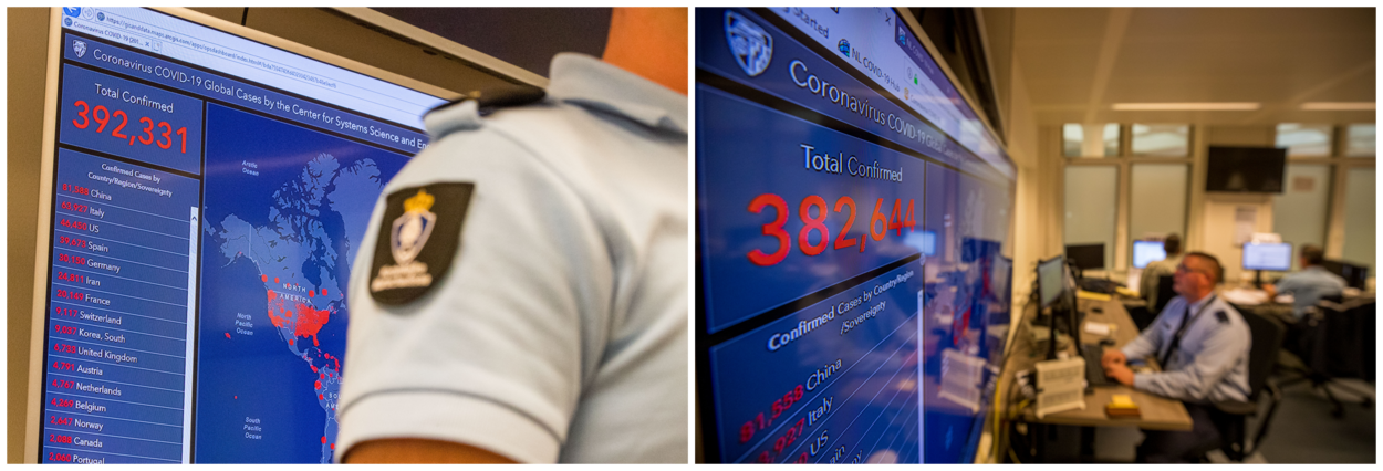 Het Crisis Actie Team, waar deze foto’s werden genomen, bepaalde of, waar en wanneer militairen en materieel werden ingezet in strijd tegen het coronavirus.