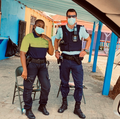 Zowel eerste luitenant Koos Venema (KMar) als ranggenoot Terry van der Geer (mariniers) startten hun werk op 6 april op het grootste van de 3 SSS-eilanden: Sint Maarten. "In tegenstelling tot het Franse deel, waren we op het Nederlandse anderhalve week echt in lock down”, vertelt Venema, eerste teamleider KMar op Sint Maarten. “Alles was gesloten, ook supermarkten.”
