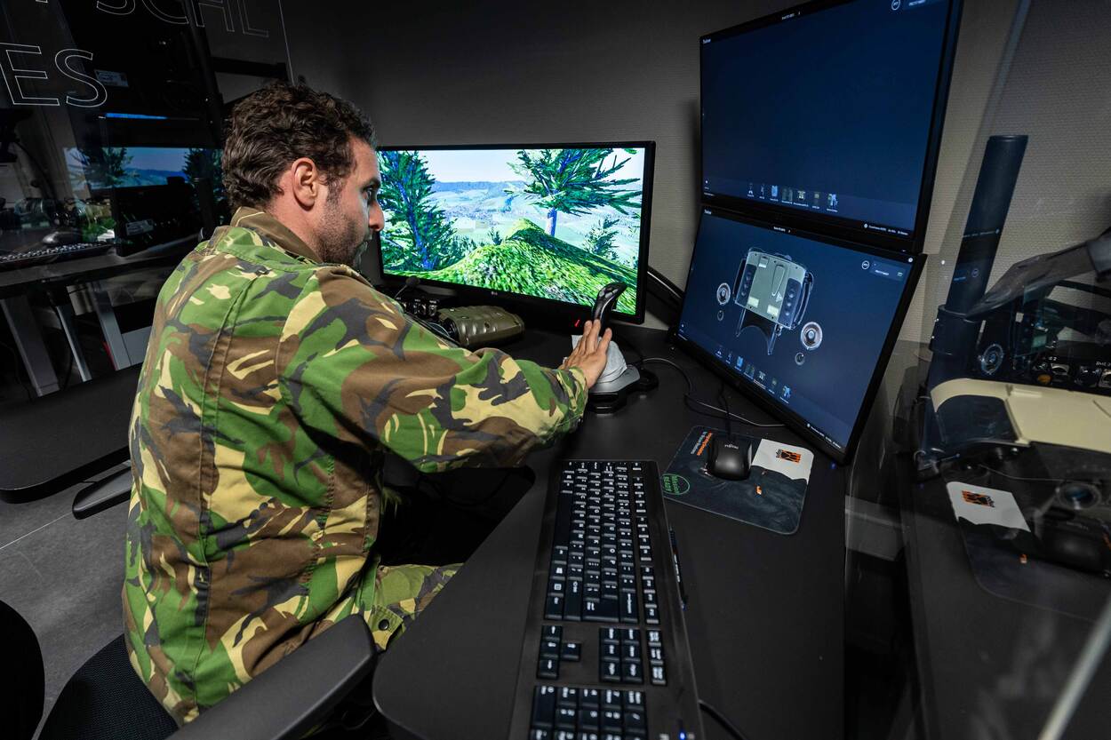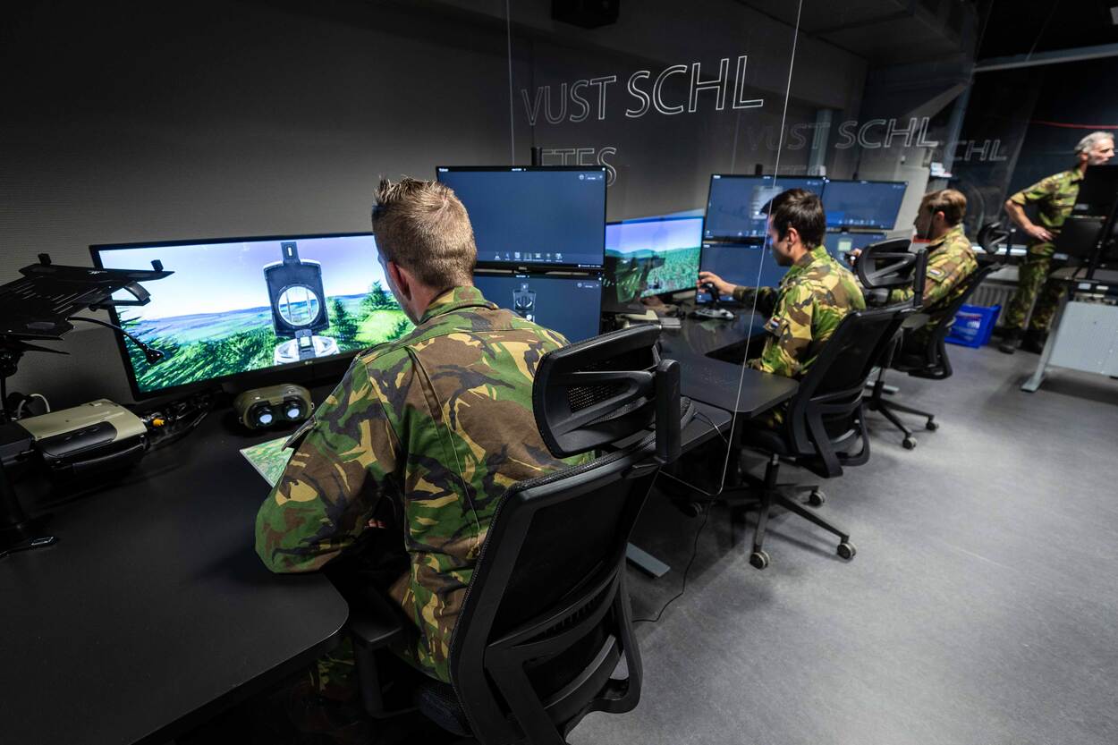 “Juist daarom zijn die 3 camera’s zo belangrijk”, benadruk Remco. “Daarmee is de instructeur niet gebonden aan één en hetzelfde standpunt, maar kan hij vrijelijk door de ruimte bewegen. Net als in het echt.” “Zolang het duurt blijven cursisten voor vervolgmodules hier terugkomen”, gaat De Regt verder. Zoals gezegd kunnen praktijklessen in de simulator of op het 81 of 120 mm stuk niet op afstand worden gegeven. “Maar met al die hedendaagse technieken is qua mogelijkheden de sky the limit. Zeker nu er zoveel druk op zit. Corona Bedankt?”