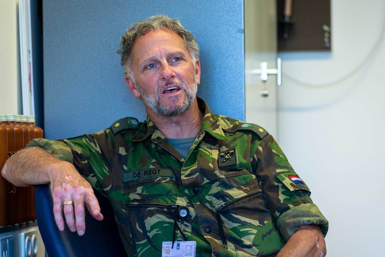 Om kruisend verkeer op de nauwe gangen te vermijden, geldt in het pand een verplichte looprichting. Daarmee is de kans op tegenliggers zo goed als uitgesloten. Militairen zijn immers goed in het opvolgen van orders. “Dat zou je zeggen ja”, zegt De Regt fronsend. Dat niet iedereen zich strikt houdt aan de rood omlijste pijlen op de vloer irriteert hem. “Het is volstrekt onacceptabel”, roept hij. “Ga ‘asjeblieft’ volwassen met de maatregelen om. Iedereen weet precies wat ik bedoel.”