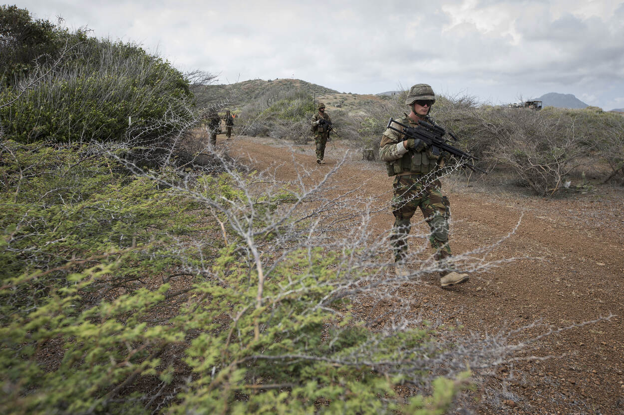 We proberen hier de trainingsmogelijkheden die we in Nederland niet hebben maximaal te benutten. Zo zijn er grote gebieden waar je kunt oefenen. Trainen in de hitte is de grootste uitdaging. Vooral de jonge mannen zijn gewend aan de Nederlandse bossen waar je met 3 liter water gemakkelijk de hei op kan. Dat is hier wel anders. Bovendien biedt het eiland alle kans om met hoogtes te werken. Klimmen en klauteren hebben we bijvoorbeeld tijdens de eindoefening ‘Tigerfeet’ volop gedaan.”