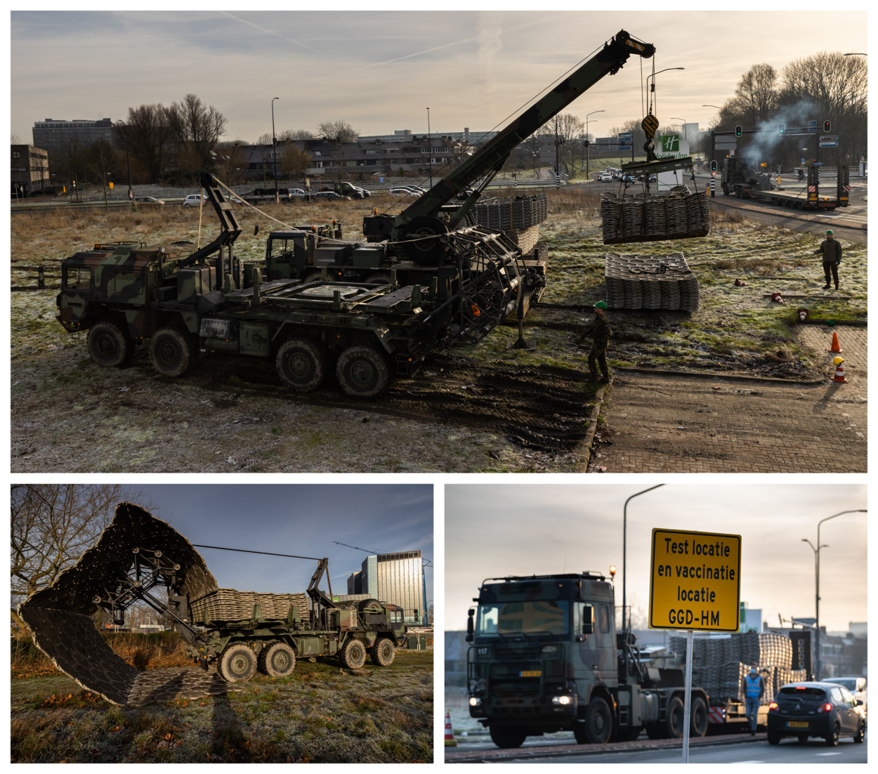 101 Geniebataljon uit Wezep ging deze week aan de slag in Leiden. Vijftien militairen van de Mattenleggergroep werden ingeschakeld om met speciale matten een parkeerterrein te realiseren op een weiland aan de Haagse Schouwweg, naast de GGD-vaccinatiestraat. De burgemeester vroeg Defensie om hulp toen er een parkeerprobleem ontstond omdat steeds meer mensen naar de priklocatie komen. “We gaan richting de 11.000 boosterprikken per dag. Al dat verkeer moet wel in goede banen worden geleid”, benadrukt woordvoerder Carin Boon van de GGD Hollands Midden. Defensie ruimt, wanneer nodig, de tijdelijke parkeervoorziening ook weer op.