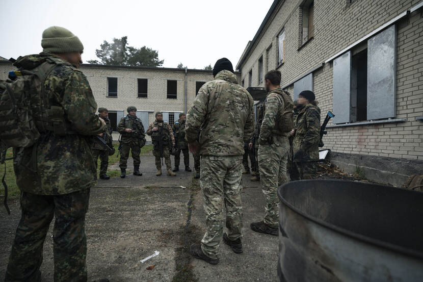 Terwijl Vincent ze gadeslaat, gaan de Oekraïners er volle kracht tegenaan in een oefening in het ‘veroveren’ van een gebouw. Daarin houden zich volgens het oefenscenario Russen schuil. Volgens de luitenant zit het met het moreel van de Oekraïners wel goed. “Ze vechten graag voor hun land, al zeggen sommigen ook: ‘als ik in deze cursus een been breek hoef ik tenminste de oorlog niet in’.”