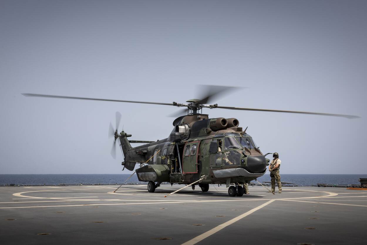 De Aspides-missie van vier maanden is in tweeën gedeeld, waardoor het (bijna voltallige) eerste Cougar-detachement halverwege de missie wordt afgelost. Tijdens de missie geldt een deck cycle van twaalf uur op/twaalf uur af, waarbij de Cougar binnen dertig minuten airborne moest kunnen zijn: Alert 30.