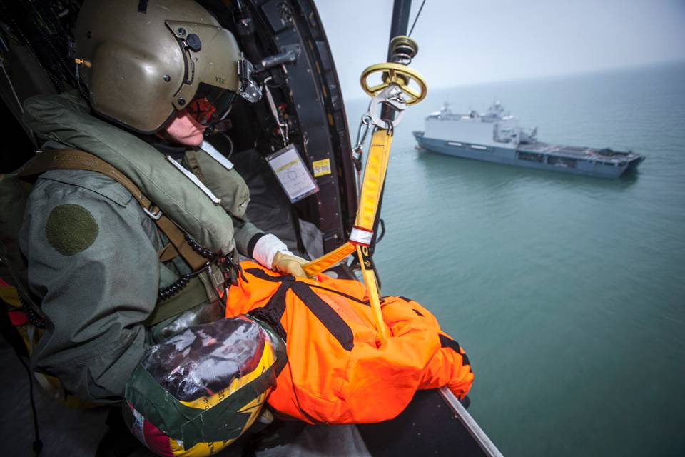 Naast de taken binnen het oefenscenario van Joint Warrior, oefende het luchtmachtteam andere skills & drills zoals de redding van een drenkeling.‘Landen op een schip vraagt meer aandacht’, stelt Mark. ‘Het waait hier harder dan op het land en het dek deint mee met de hoge golven.’