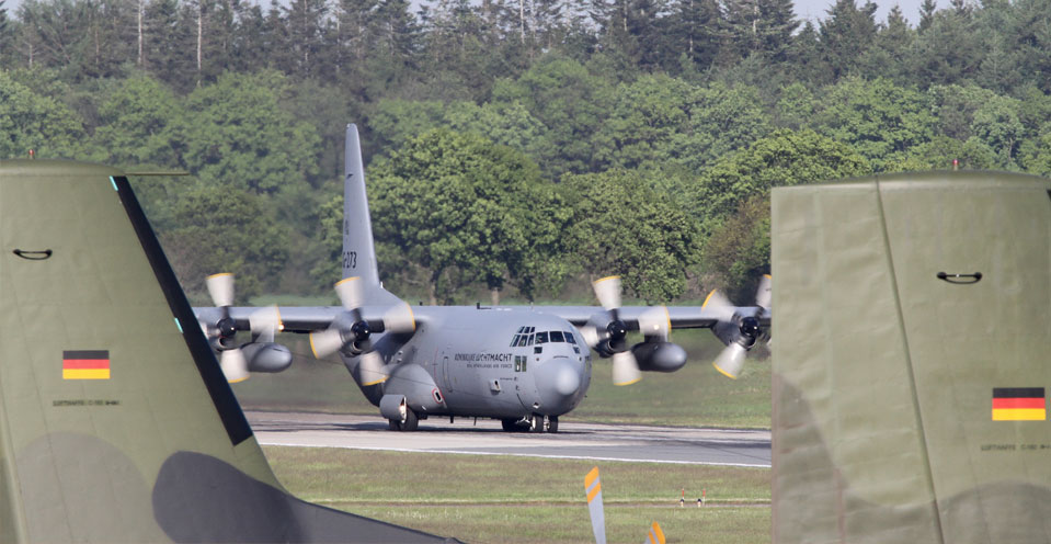 Op een flinke steenworp afstand van het Nederlandse F-16 detachement op Jagel – een kwartiertje rijden met de auto – ligt de transportvliegbasis Hohn. Hoewel het lot van de basis over twee jaar bezegeld wordt, draaien de C-160's volop mee in de oefening. Een prima plek dus voor de delegatie van het Eindhovense 336 Squadron om tactische inzet te oefenen.“Dat gaat veel verder dan van A naar B met een tactische aproach.” Dat zijn woorden van detachementscommandant majoor François. “We zijn in deze oefening veel meer onderdeel van het grote geheel, van het hele tactische plaatje. Niet meer alleen air logististic transport van standaard passagiers en vracht. Tijdens deze oefening voeren we bijvoorbeeld airdrops uit en werken we onze ‘taskings’ zelf uit.