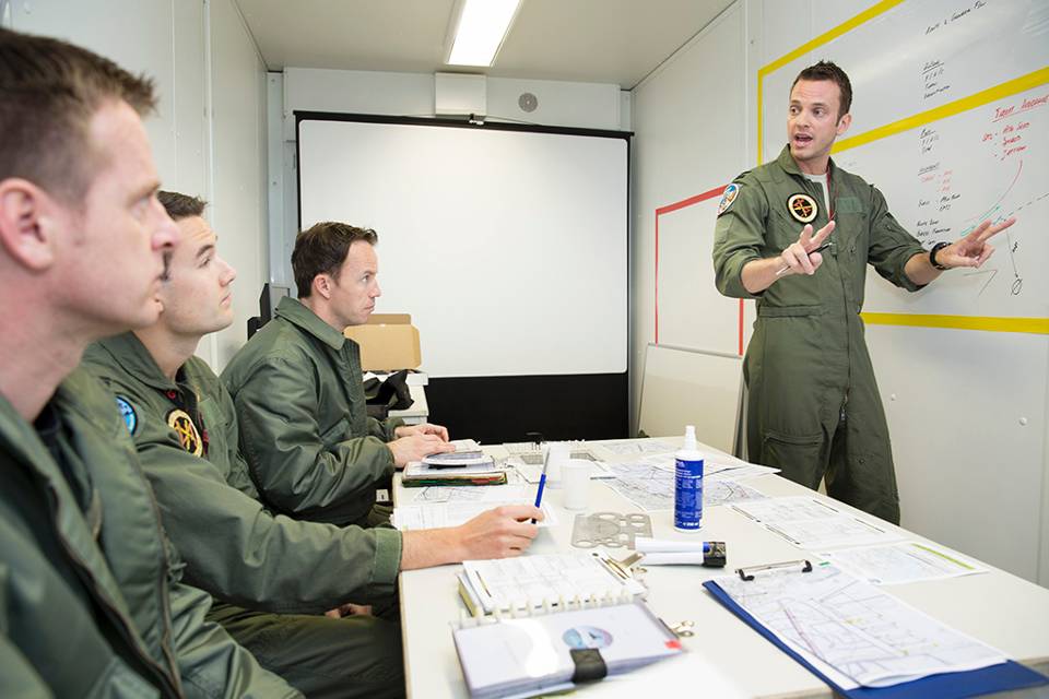 Debriefen doen de vliegers voor een deel face-to-face en deels via video-teleconference, kortweg VTC. “Dat werk verbazend goed”, reageert majoor Theo. “Dat was voor ons ook 1 van de redenen om hier naartoe te komen. Het is de eerste oefening waarin ze dit gebruiken en het gaat erg goed. We kijken of dit ook een mogelijkheid is voor oefenvluchten tussen Leeuwarden en Volkel. Dat zou de waarde van onze training erg verhogen.”
