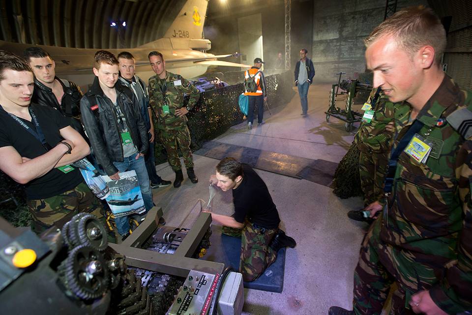 Dit jaar is er veel meer dan in voorgaande jaren aandacht voor geïnteresseerden in een baan bij de luchtmacht. Zo’n 5000 zogenoemde ‘talenten’, leerlingen van middelbare scholen, krijgen op vrijdag extra aandacht van het luchtmachtpersoneel. In diverse shelters geeft dat specifieke informatie over hun eigen werkervaring. “De animo is voor mij boven verwachting”, geeft fighter allocator van het AOCS Nieuw Milligen kapitein Jaco Booij aan.