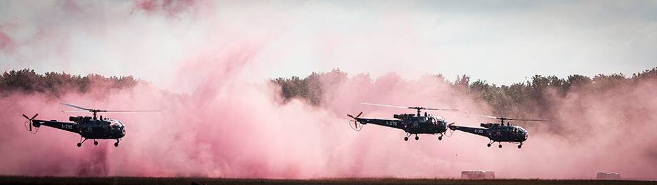 Na historische luchtvaart als Fokker Four, de P-51 Mustang en de KLu Historische Vlucht, opent de vliegshow beide dagen met een vertrouwd geluid. Eeén dat al bijna twee decennia niet meer te horen is dus eigenlijk ook al historisch: meerdere Alouette III’s in de lucht. Het was net geen wedergeboorte van het demoteam The Grasshoppers, maar drie vliegende exemplaren voor een synchroon display deed oude tijden herleven.
