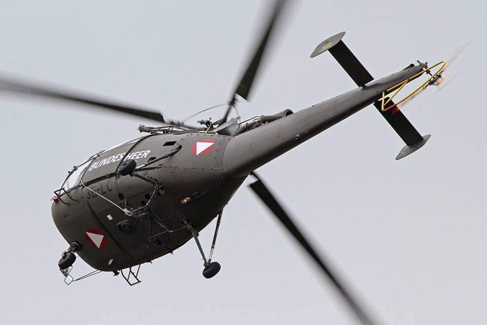Boven: De vierde Alouette III in de vliegshow isvan de Bundesheer uit Oostenrijk. Foto: Arno Marchand
