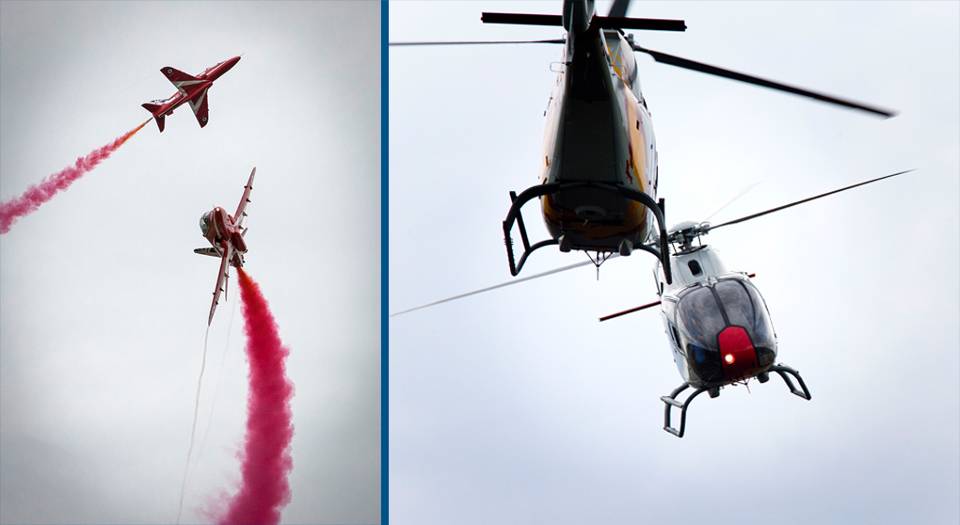 Nog ouder – liefst 70 jaar – en 1 van de hoogtepunten is de demonstratie van de Battle of Britain Memorial Flight met een Lancaster en 2 Spitfires. Juist in een jaar dat de wereld stilstaat bij het begin van het einde van WOII zijn dit bijzondere verschijningen. Eveneens uit Groot-Brittannië komen de wereldberoemde Red Arrows. Het andere demonstratieteam – heel toepasselijk voor helikopterbasis Gilze-Rijen – is Patrulla Aspa dat met zes EC-120 opleidingshelikopters voor de tweede keer in Nederland optreedt.