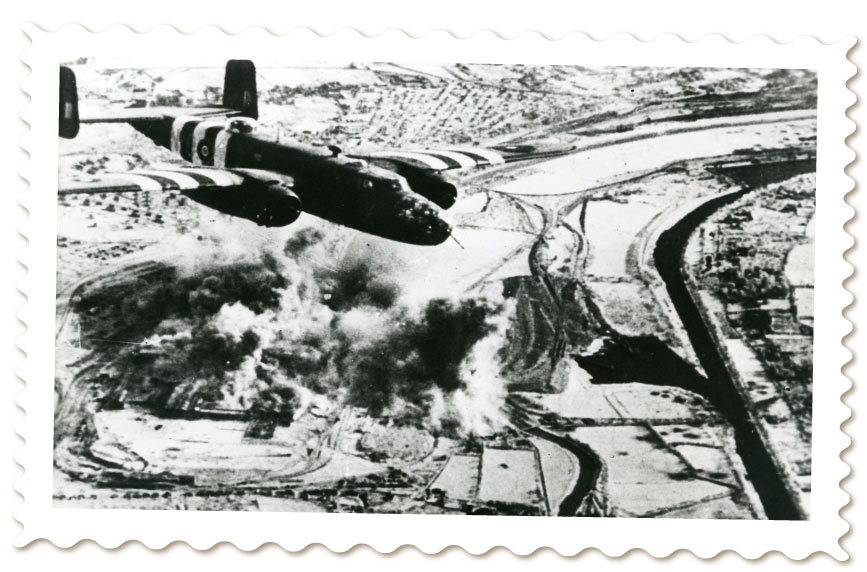 De zwart-witfoto´s tonen personeel en B-25 Mitchells tijdens de Tweede Wereldoorlog. Foto's: uit collectie Nederlands Instituut voor Militaire Historie.