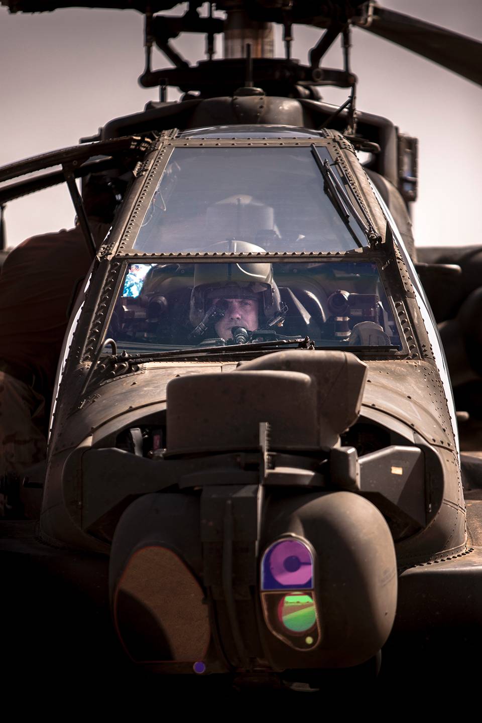 Grondpersoneel van vlucht 4 'Havoc' zorgt voor een helder zicht van de Apache-bemanning.