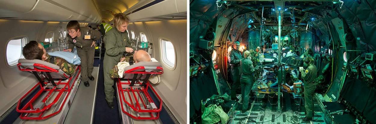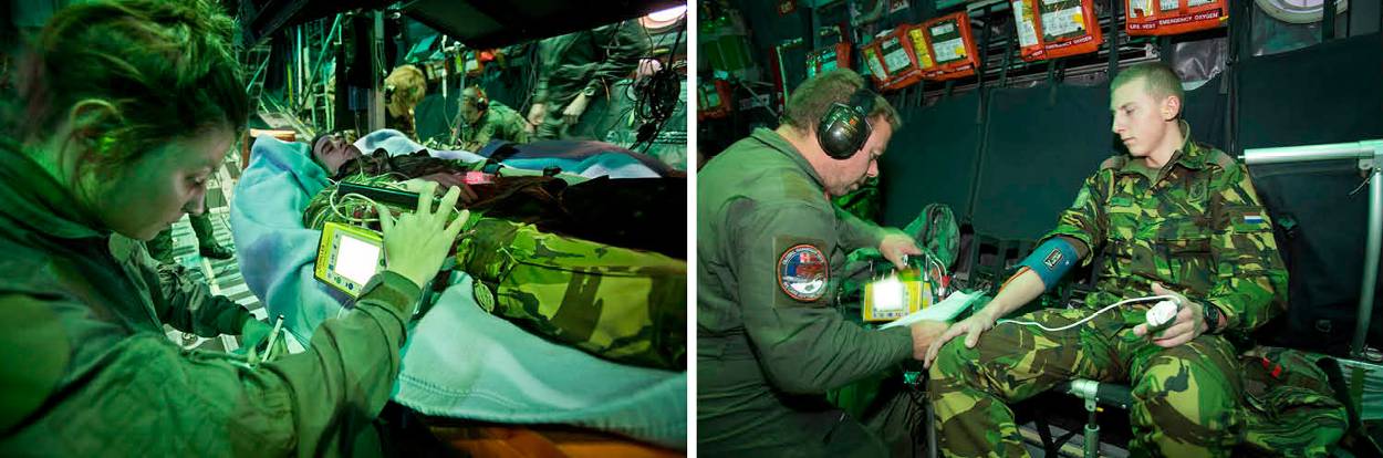 Hier is ook voor de flight crew een belangrijke rol weggelegd. Gezagvoerder majoor Marcel: “De aard van de verwondingen van de patiënten heeft invloed op de uitvoering van de vlucht. Zo kan ik bij zwaargewonden bijvoorbeeld niet te hard accelereren op decellereren. En kan ik bij een patiënt met een longaandoening niet te hoog vliegen omdat de luchtdruk dan voor problemen kan zorgen. Laag vliegen kost dan weer meer brandstof…”