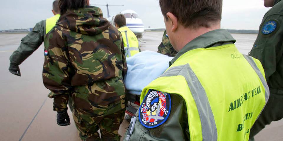 “Hij heeft het helaas niet gehaald”. Sergeant-majoor Arjen draait zelf in de oefening ‘Joint Medical Modules’ mee als observer, maar is zelf ook flight nurse. Medisch personeel van de Koninklijke Luchtmacht en Belgische krijgsmacht oefenen in gecombineerde teams de ‘skills & drills’ die ze nodig hebben om strategisch luchttransport van zieken en gewonden uit te voeren. Arjen: “Daar hoort het omgaan met stress en verlies ook bij.”