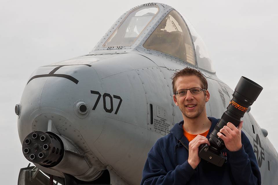 De hobby van grafisch vormgever Van Veenendaal is schilderen en zelf fotograferen vormt daarvan het verlengde. Militaire vliegtuigen fotografeert hij pas sinds 2012 (eigen foto).