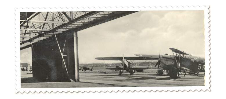 Bekend beeld van Fokker C.V’en vanuit de hangar op Soesterberg. Op de achtergrond zou nu het Nationaal Militair Museum te zien zijn.