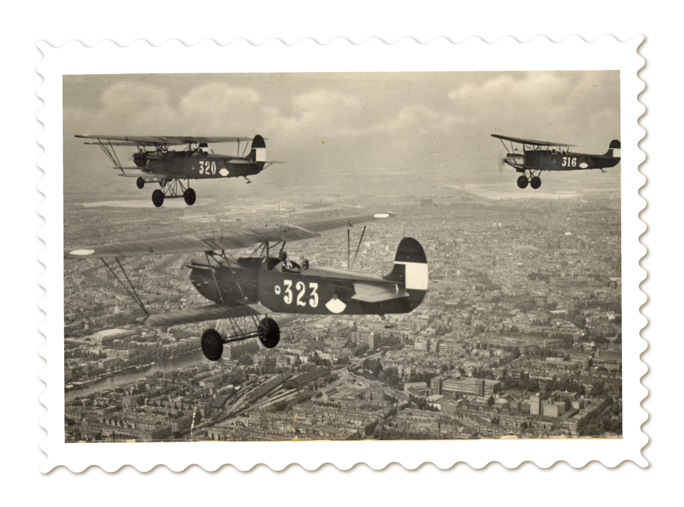 Hans Hellendoorn (25-12-1918) is nog 18 als hij tijdens zijn dienstplicht overstapt van de infanterie naar de opleiding reserveofficier waarnemer op Soesterberg. “Meteo-morseseinen, fotografie met grote camera’s, schieten, bommen richten, kaartlezen en natuurlijk vliegen. Ik leerde het daar allemaal. Het was een geweldige tijd. De 1e paar dagen werd ik wel ‘kotsgedraaid’ door de vlieger, maar krijgertje spelen in de wolken was adembenemend, met luchten zó intens blauw. Het ging ook wel eens mis: collega’s met vleugels in de bomen of met landingsgestellen in het prikkeldraad omdat ze niet zagen waar het vliegveld precies begon. Ik was artilleriewaarnemer, opgeleid om vuurleiding te geven vanuit de lucht. Je communiceerde met de grondtroepen door lappen uit je vliegtuig te gooien. Lukte dat niet, dan schoot je met een soort pistooltje iets van een wc-rol, waarop een boodschap was geklad, naar beneden. Je was hartstikke druk daar achter in die cockpit. De vlieger zat natuurlijk, maar als waarnemer stond je meestal rechtop, je parachute onder je derrière. We vonden het allemaal mooi, maar ik had wel besloten dit niet mijn hele leven te doen.”