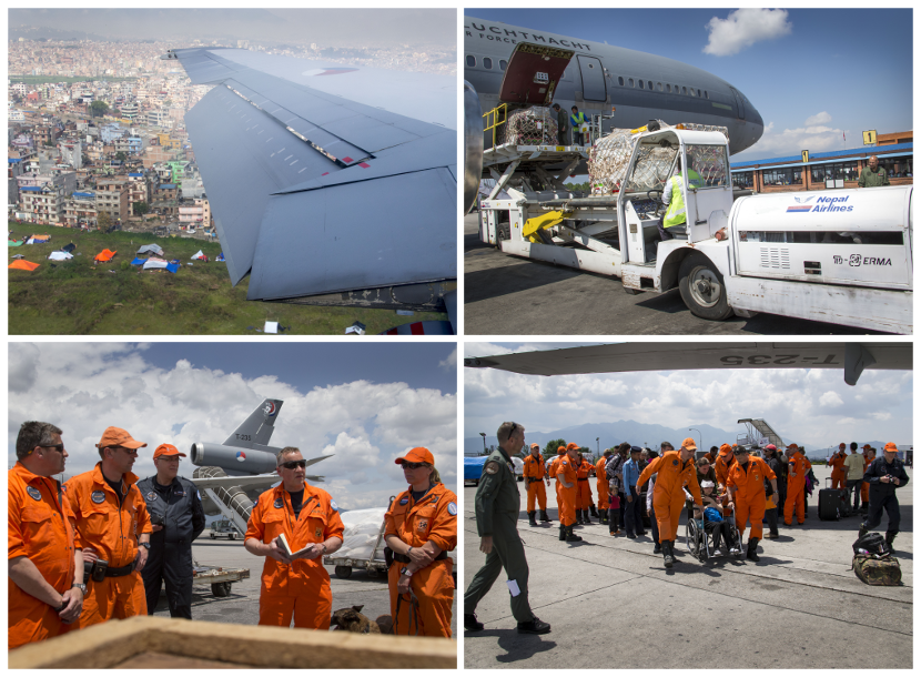 Een KDC-10 van het 334 Squadron bracht op 27 april een Nederlands Nederlandse Urban Search and Rescue (USAR)-team en 5 ton hulpgoederen naar de Nepalese hoofdstad Kathmandu. Nederland kwam hiermee tegemoet aan een hulpverzoek van de Nepalese overheid en de Verenigde Naties. Een dag later kwam het transporttoestel terug op de vliegbasis Eindhoven. Aan boord waren naast 40 Nederlanders ook 7 buitenlanders aan boord.