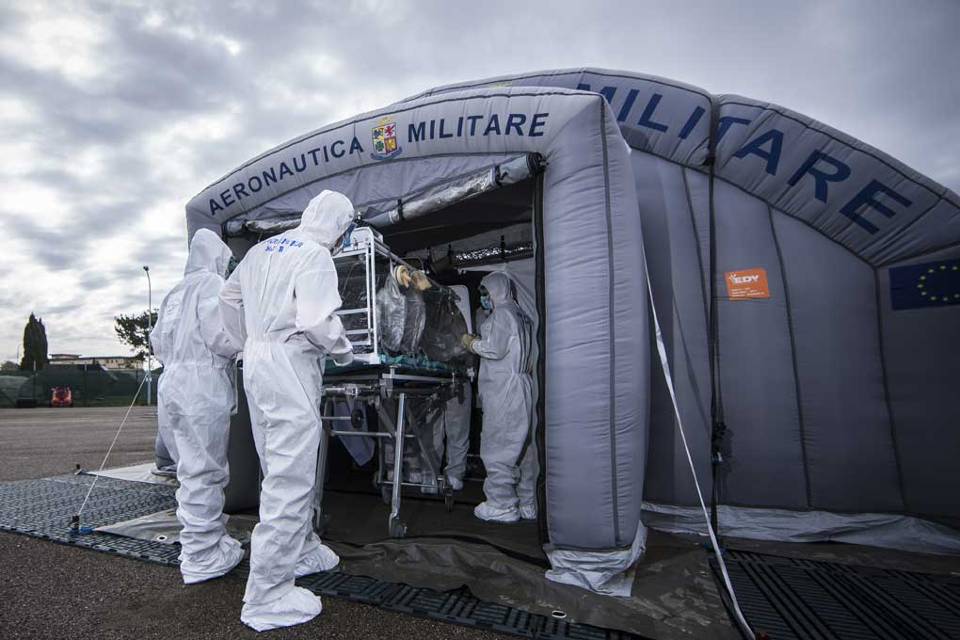 Medisch en ondersteunend personeel van de Nederlandse krijgsmacht doet hier de eerste praktijkervaring op in het vervoer van dergelijke patiënten. De Italiaanse luchtmacht heeft sinds 2005 een speciale eenheid voor bio aeromedevacs, luchttransporten voor patiënten met zwaar besmettelijke ziekten. “Dag en nacht staat hier een team klaar om een patiënt op te halen, van waar ook ter wereld”, vertelt kolonel-arts Roberto Biselli. “Een Italiaan of een internationale hulpverlener, dat maakt niet uit. Wij halen ze op. Dat zien we als onze plicht.”