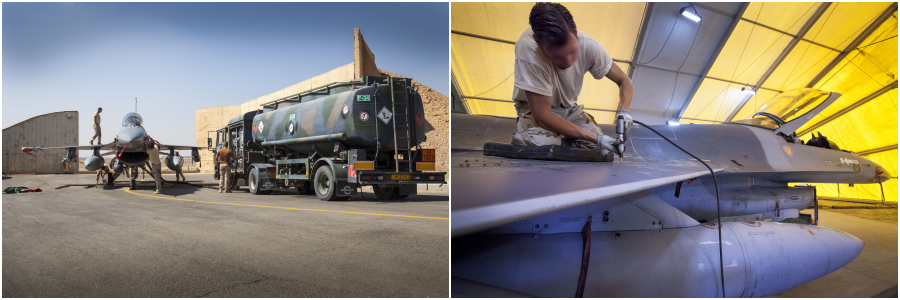 Het hele Nederlandse detachement van zo’n 200 man is er op gericht om de F-16’s dag en nacht inzetbaar te hebben. “Je merkt dat de leeftijd van de F-16 veel meer onderhoud met zich meebrengt. Het technisch personeel zorgt er te allen tijde voor dat de toestellen inzetbaar zijn, of dat nu 10, 16 of 20 uur kost. De veerkracht blijft na 2 maanden nog gewoon in het detachement zitten. Maar ik hou er duidelijk track op dat de inzet verantwoord blijft.”