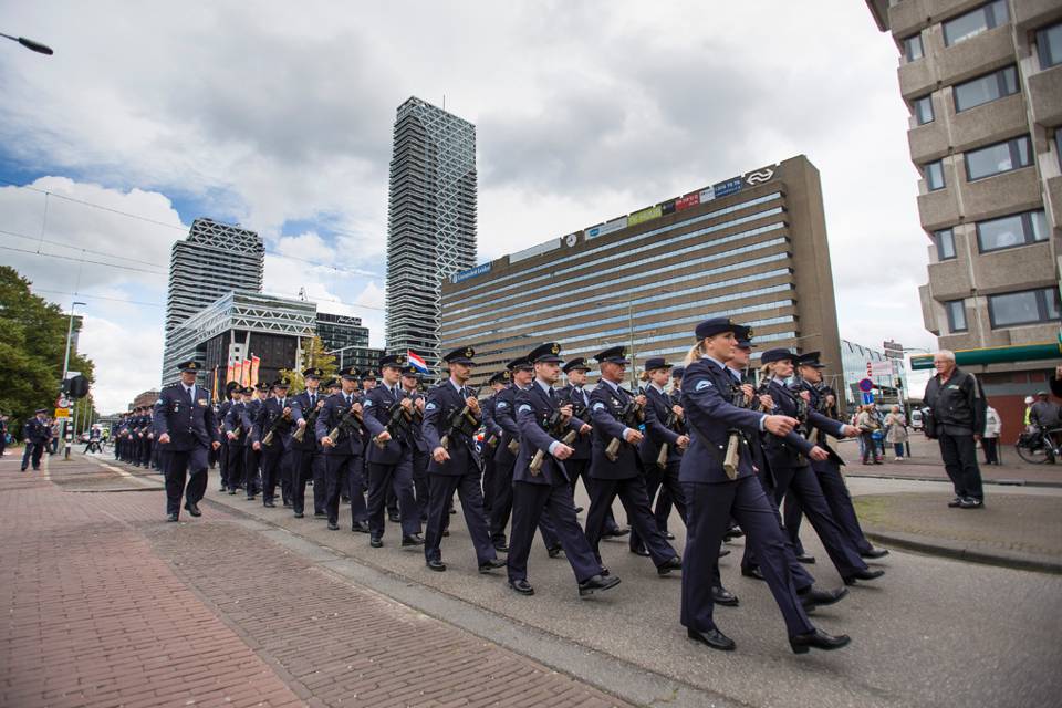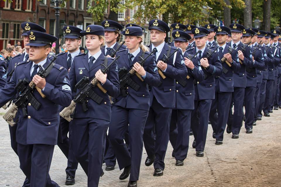 Het detachement van de vliegbasis Leeuwarden staat klaar op het Malieveld. Foto: korporaal 1 Zadrach Salampessy
