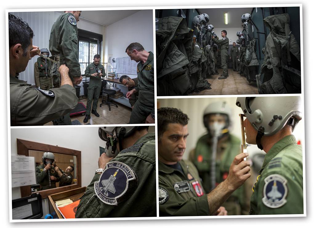 Op Lecce verwacht je niet direct een Nederlands sprekende Italiaan tegen te komen. Die is er wel want instructeur Gianpaolo Pantaloni (Foto linkboven, midden) heeft een Nederlandse oma. “Welke maat is dit?”, vraagt hij aan zijn collega als De Smit zijn flight suit past. “Eh, neemt u deze maar. Deze is een beetje groter, eh, langer, voor Italianen.”