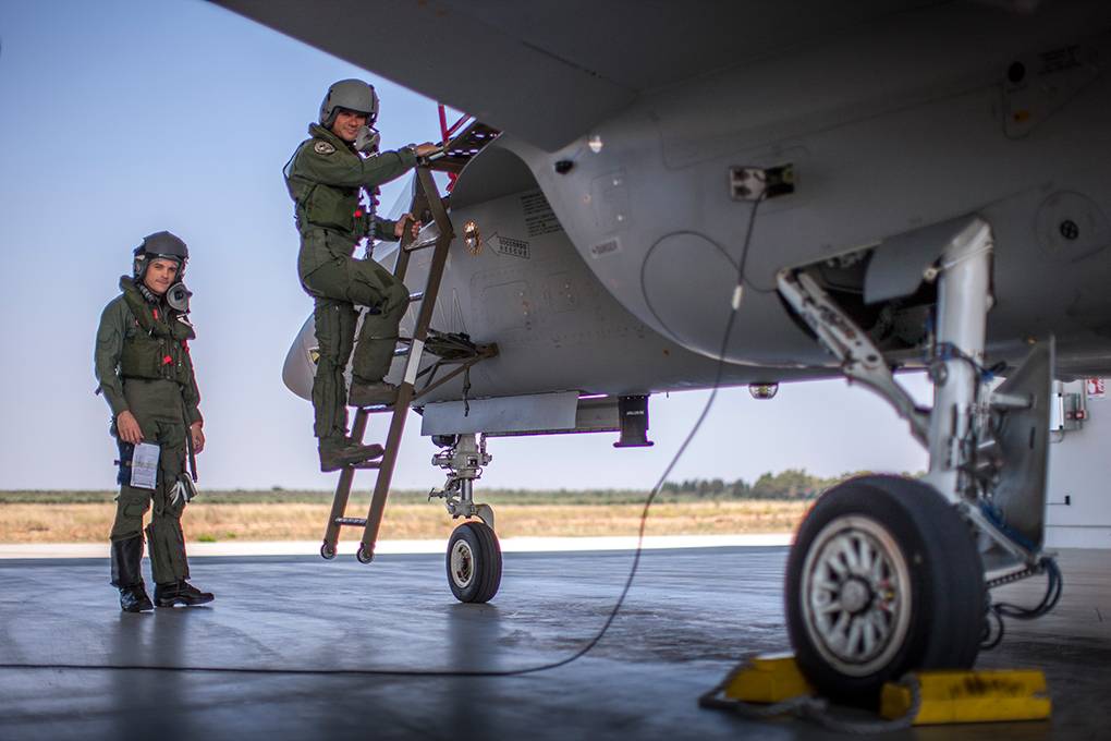Op de zogeheten hangarette, speciaal voor de M346 gebouwde hangarboxen, flikkeren bij nummer 6 en 7 inmiddels rode lampen. Hier staan de trainers waarin De Smit en majoor Pascal Smaal hun kennismakingsvlucht maken. “Je ziet wel dat het toestel nu nog meer gefocust is op de Eurofighter”, zegt De Smit na deze luchtdoop. “Het zou een concept kunnen zijn voor lead-in-trainer voor de F-35. Dit is een trainer die mogelijkheden biedt zoals een trainer bedoeld is. Misschien zijn er ook wel andere trainers met die capaciteiten. Een F-35 wordt het niet want daarmee is het simpelweg niet te vergelijken.”