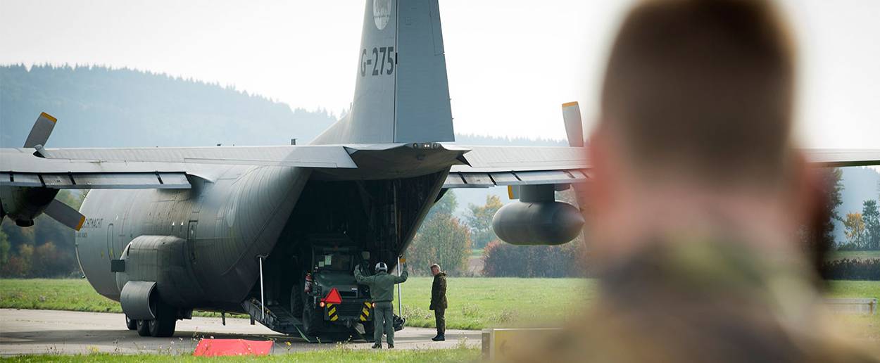 De eenheden bekwamen zich in het aanleveren van vracht voor de C-130 en het verwerken daarvan na het afwerpen, daarbij gesteund door het Pathfinderpeloton. Het lijkt een kleinigheid, het spannen van een net om de lading. Glenn en zijn collega specialist luchtvracht sergeant 1 Freddy weten echter als geen ander dat het bij het aanbieden van de vracht om details gaat. “De oefening draait met zowel onze C-130 als een Duitse C-160”, zegt laatstgenoemde. “Bij de Hercules reken je in Amerikaanse pounds, bij de Transall en straks de A400 in kilo’s. Ik bedoel maar.”