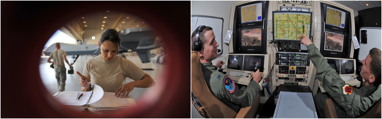 Hoewel de MQ-9 over geautomatiseerde functies beschikt, vliegen deze toestellen dus zéker niet autonoom of zelfstandig, maar wél onbemand. Een gekwalificeerde bemanning, bestaande uit een vlieger en sensoroperator, bedienen het toestel – geen verrassing – op afstand. Er bevindt zich dus te allen tijde een man-in-the-loop. De vlieger is ervaren op jachtvliegtuig of helikopter voordat hij een MQ-9 bestuurt. De sensoroperator is verantwoordelijk voor het bedienen van de geavanceerde sensoren van de MQ-9.