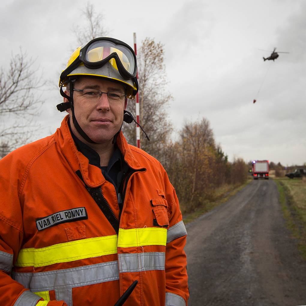 Het Mobile Air Operations Team (MAOT) van de Koninklijke Luchtmacht stuurt de vliegcrews vanaf de grond aan. “Wij vertalen het brandbestrijdingsplan van de Nederlandse en Belgische brandweer voor de vliegers,” licht commandant MAOT sergeant-majoor Paul Hulscher toe. Zijn eenheid vormt samen met het Heli-team Brandweer van de Veiligheidsregio Noord- en Oost-Gelderland – gespecialiseerd in natuurbranden – het FBO-team. Deze bijstandseenheid staat onder commando van de (lokale) Belgische brandweer. “In principe bepalen zij waar we moeten blussen,” zegt Hulscher, “maar in de praktijk ligt het iets genuanceerder. Het Heli-team brandweer geeft namelijk bindend advies. Vervolgens toetsen wij de plannen op haalbaarheid en praten de vliegers op hun doel.”